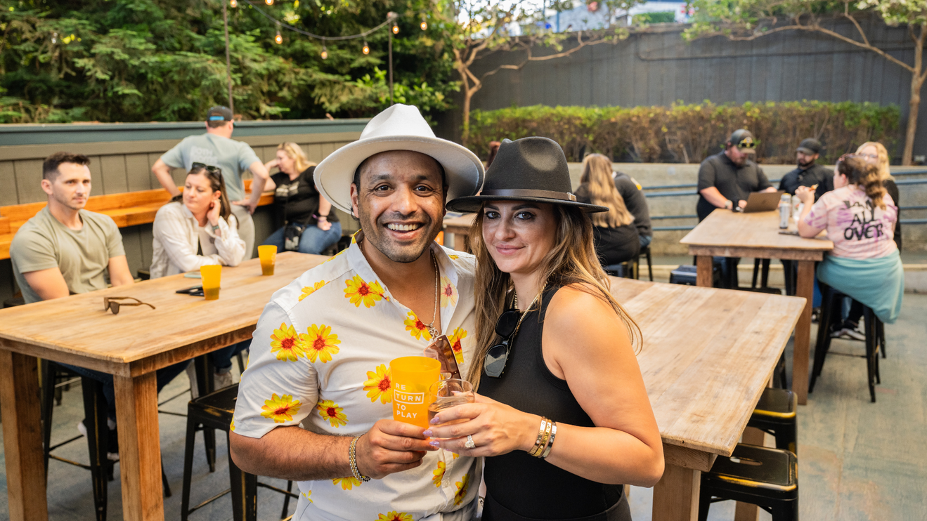 Beat the heat and grab your friends to hangout in the comfort of shaded high-top seating.